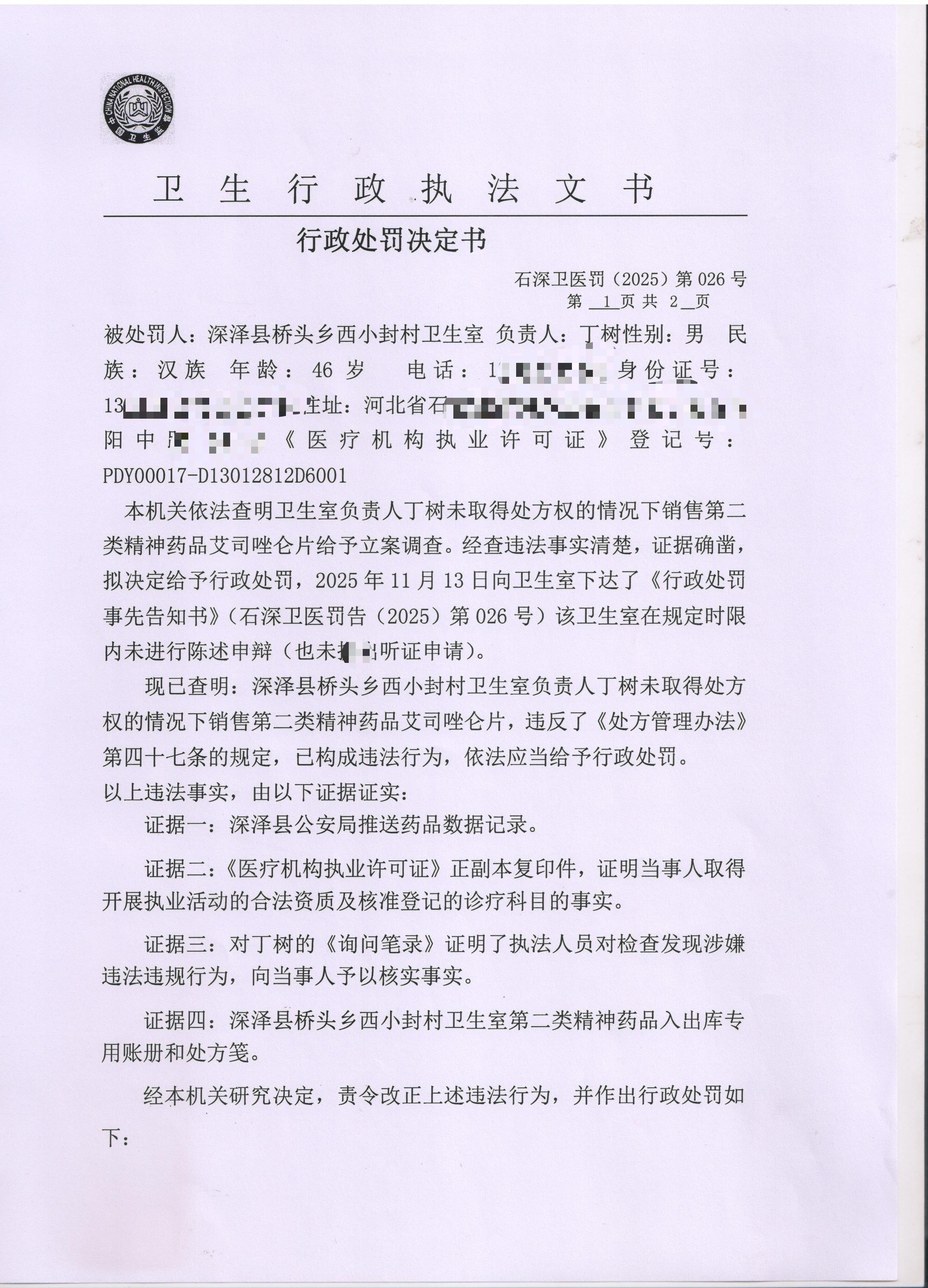 石深卫医罚(2025)第026号