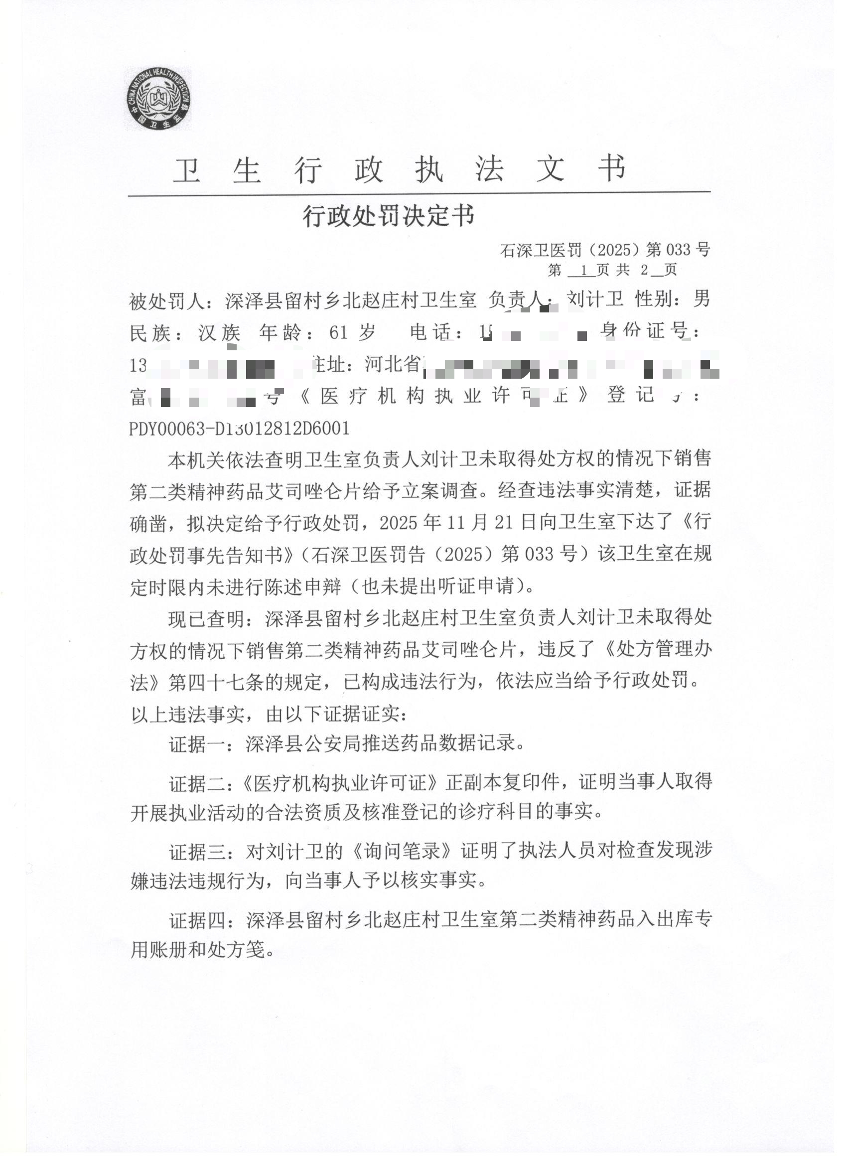 石深卫医罚(2025)第033号