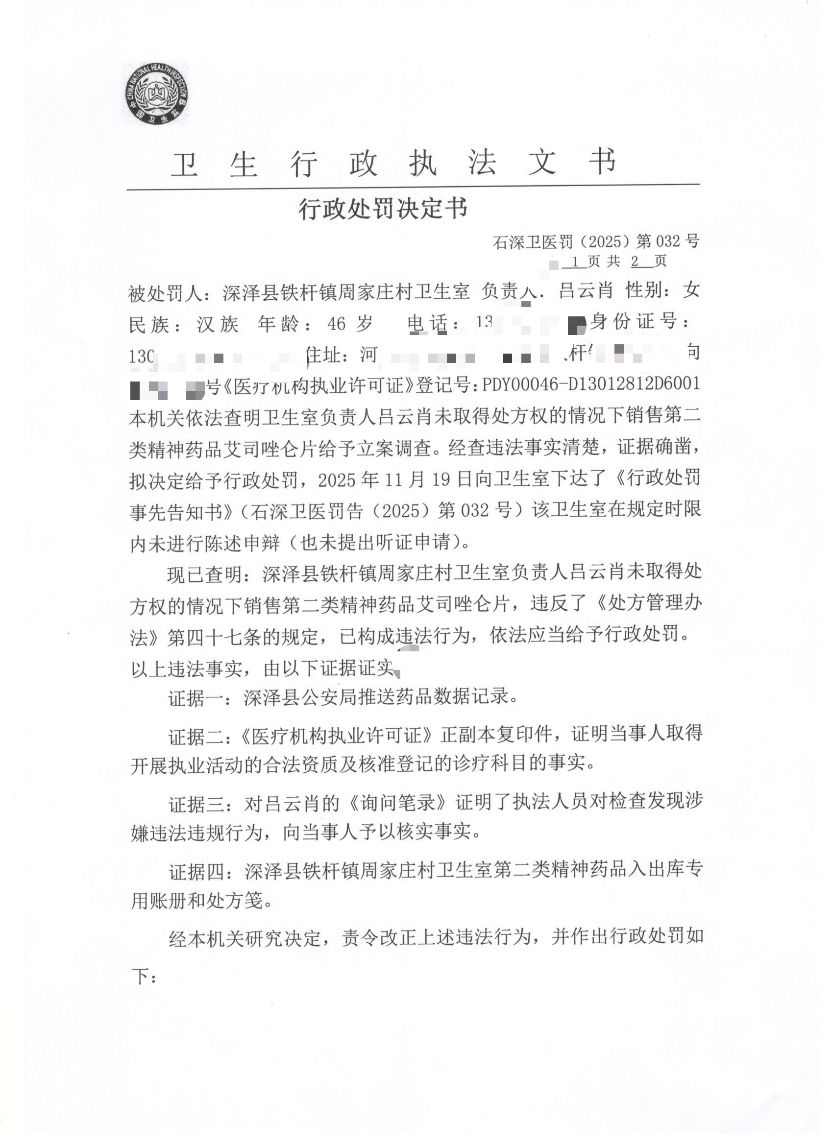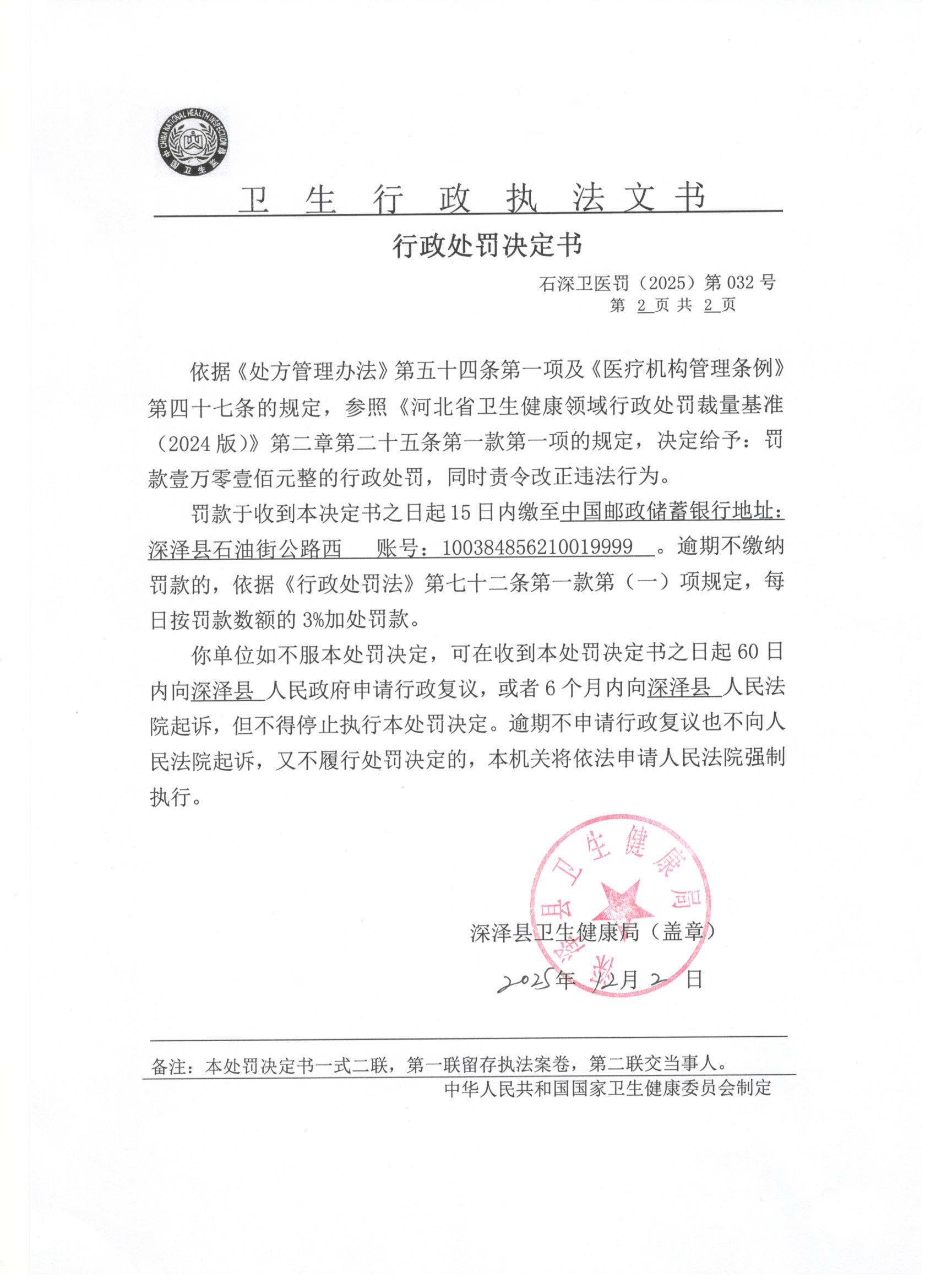石深卫医罚(2025)第032号