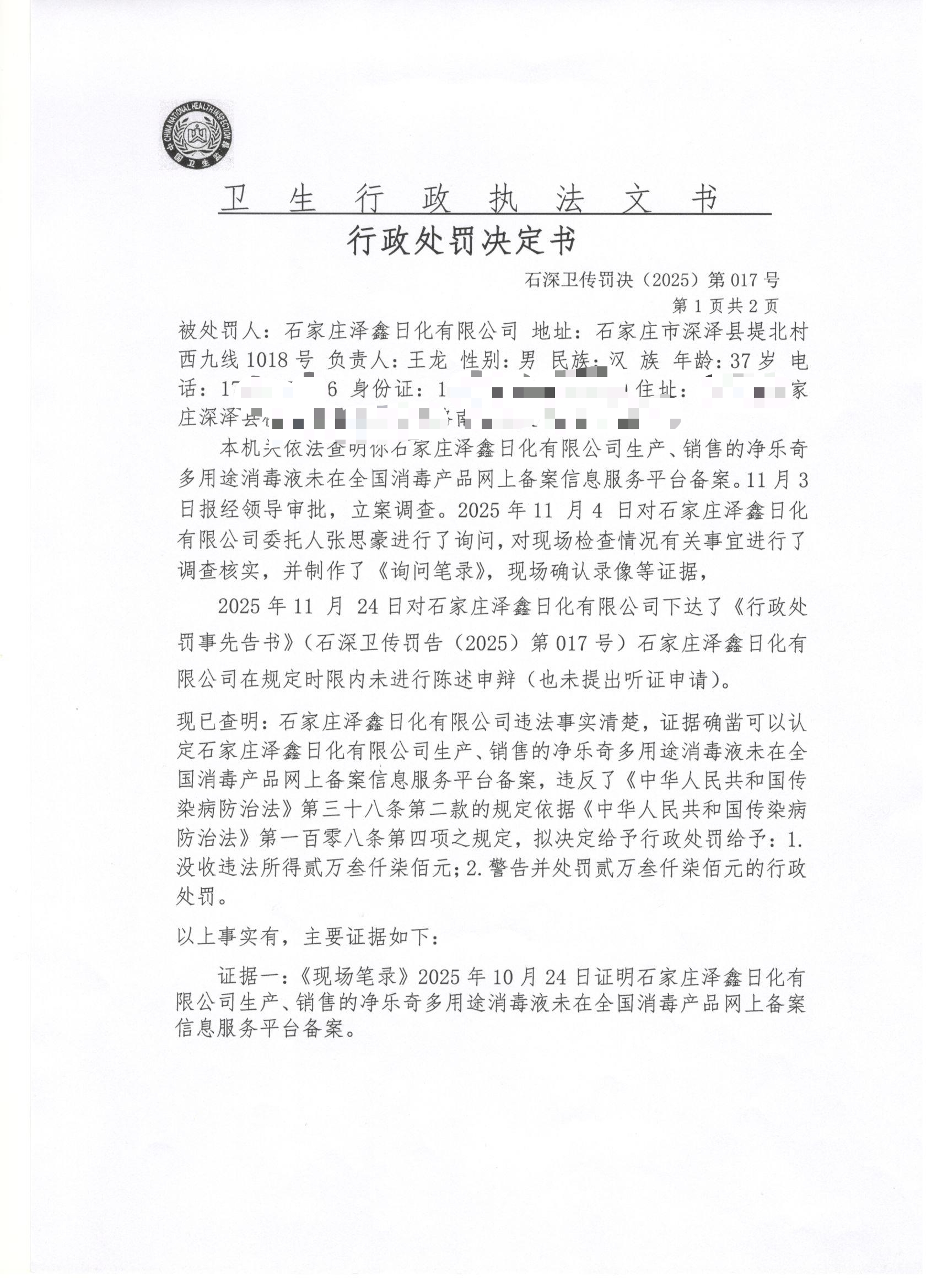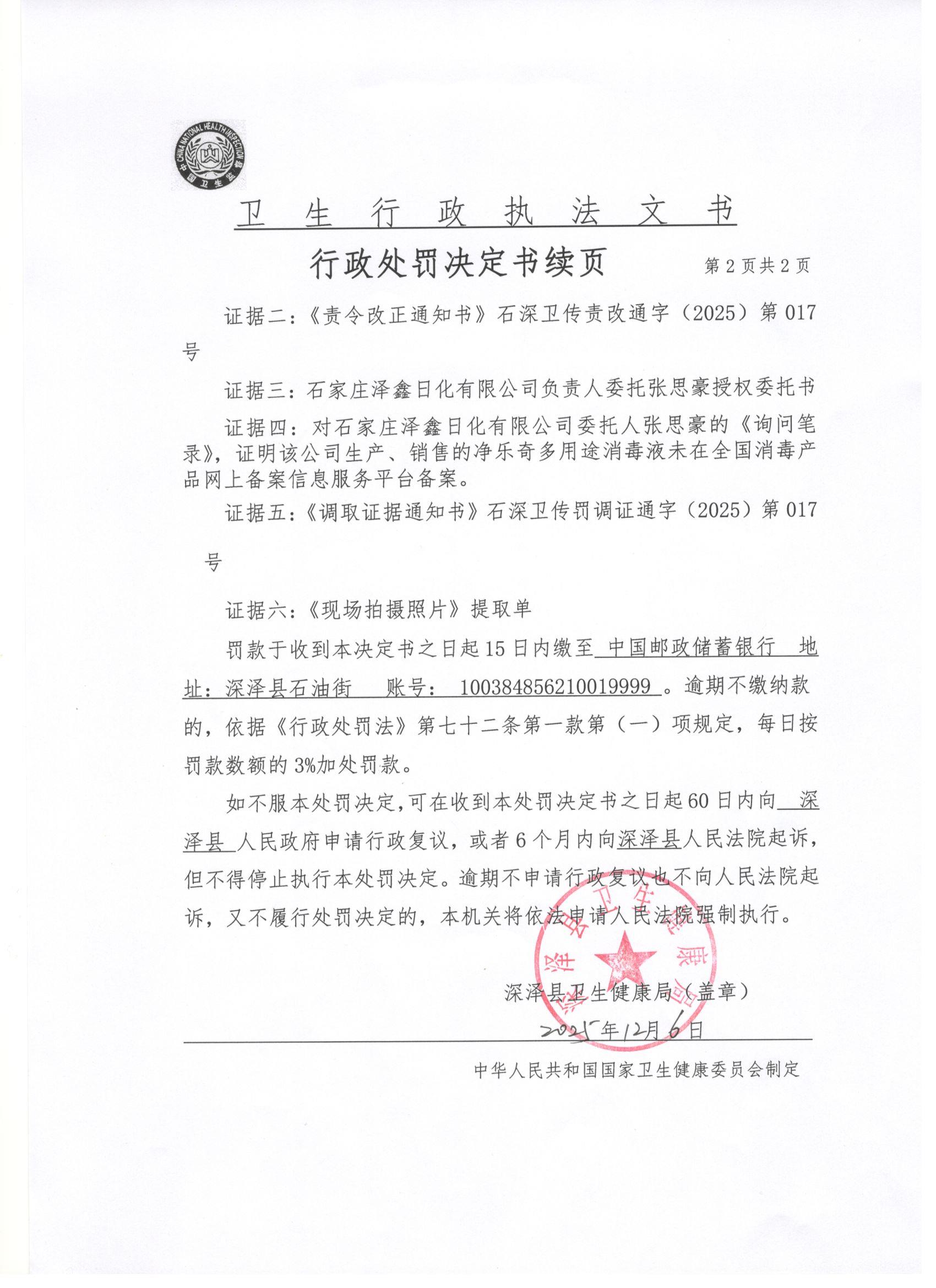 石深卫传罚决(2025)第017号