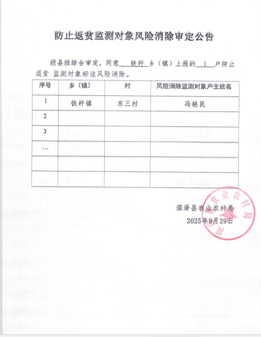 防止返贫监测对象风险消除审定公告2025.9.29