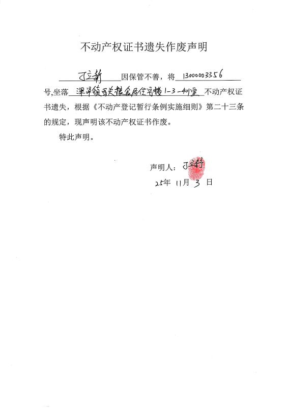 刁立静不动产权证书遗失作废声明