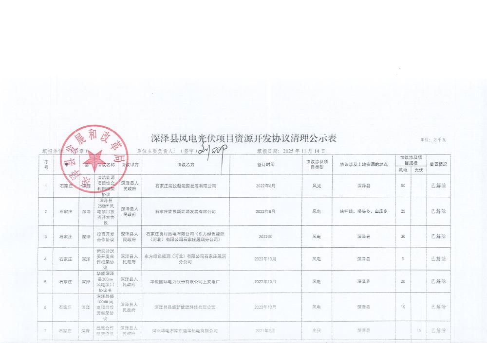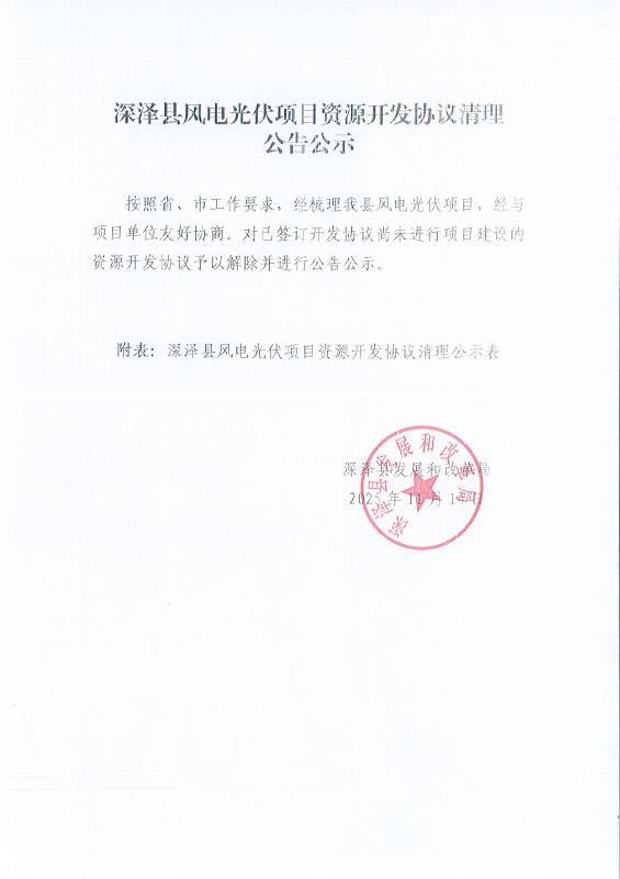 深泽县风电光伏项目资源开发协议清理公告公示