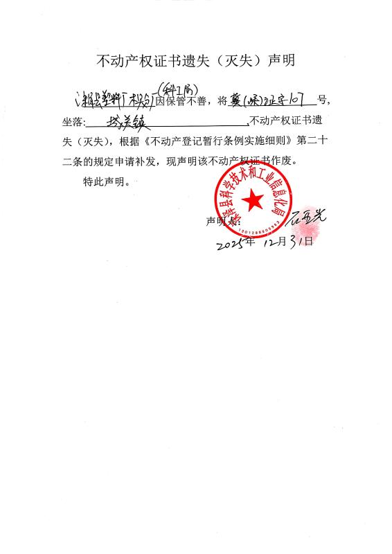 深泽县塑料厂木具分厂(科工局)不动产权证书遗失(灭失)声明