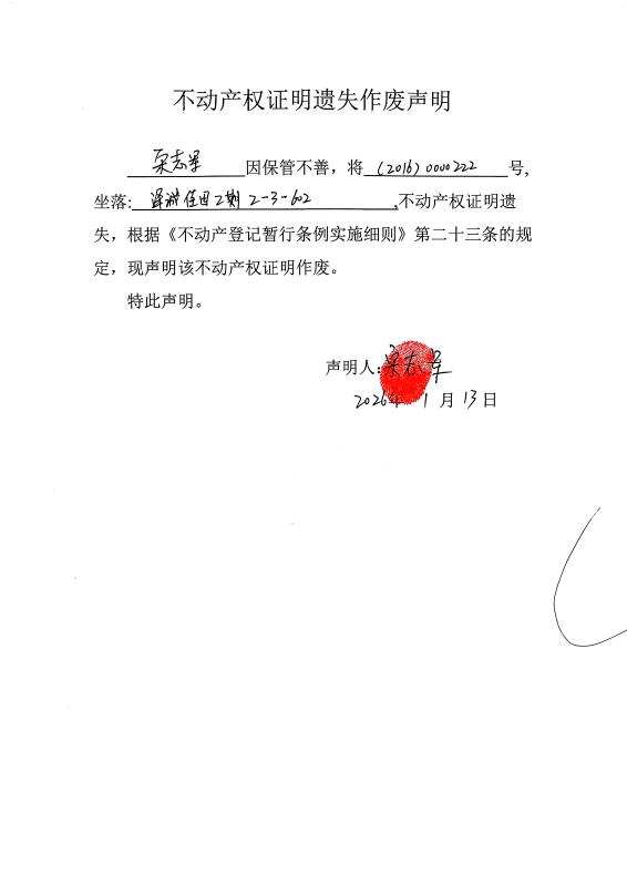 关于宋志军不动产权证明遗失作废声明