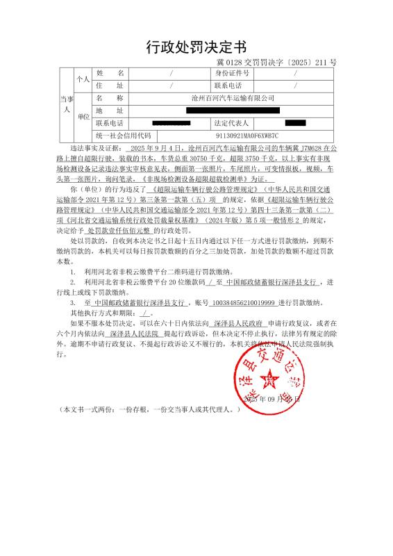 0128交罚罚决字〔2025〕211号行政处罚决定书