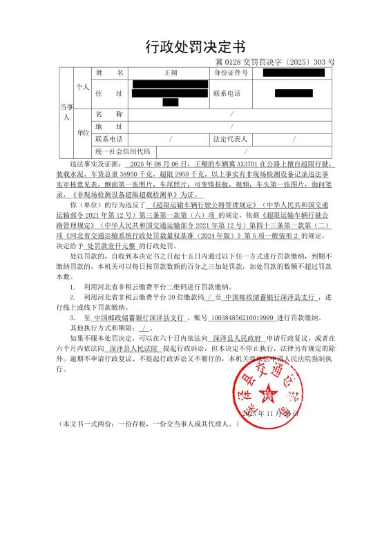 冀0128交罚罚决字〔2025〕303号行政处罚决定书_jpeg