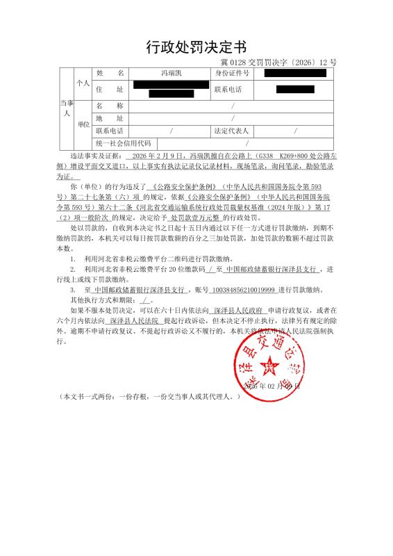 冀0128交罚罚决字〔2026〕12号行政处罚决定书