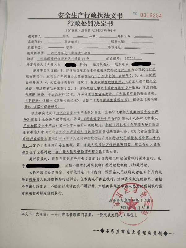 行政处罚决定书(冀石深)应急罚【2025】WH001号