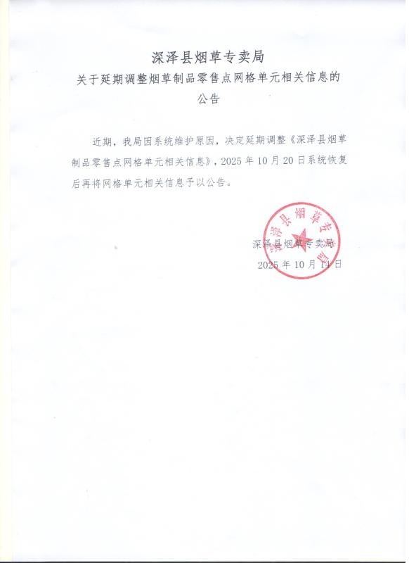 关于延期调整烟草制品零售点网格单元相关信息的公告