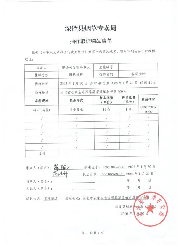 抽样物品清单